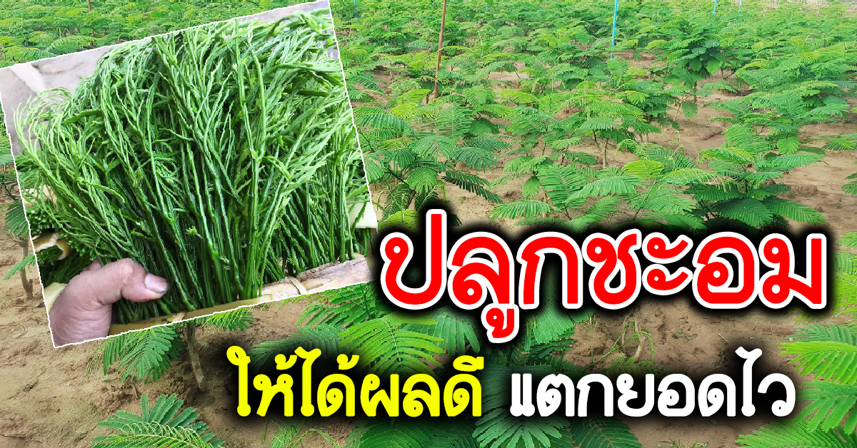 นำกล้าพันธุ์ชะอมที่แตกยอด และมีใบแล้ว 3-5 ใบ ลงปลูกบนร่องแปลง ระยะห่างของหลุมปลูกประมาณ 1-1.5 เมตร